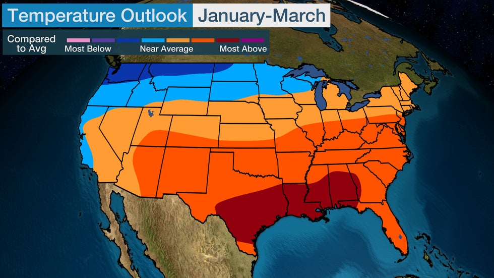 January March Temperature Outlook Much Of U S Could See Mild First Three Months Of 2022 Weather Underground